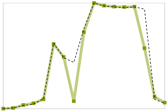 I valori della prima colonna seguono molto fedelmente le misure di irraggiamento (linea tratteggiata).